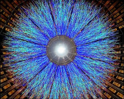 Com a rápida expansão e o consequente resfriamento, aquele meio informe e intensamente dinâmico se fragmentou e cada pequeno conjunto de quarks e glúons deu origem a uma partícula composta, o hádron. Assim foram formados, por exemplo, os prótons, cada qual constituído por dois quarks do tipo up e um quark do tipo down (os dois tipos com as menores massas entre todos os quarks), interagindo por meio de glúons.